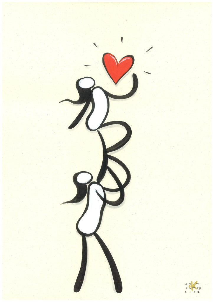 Un'opera che rappresenta due figure che si sostengono a vicenda per raggiungere un cuore. Un simbolo potente di collaborazione, supporto reciproco e dell'amore come obiettivo condiviso che si raggiunge insieme.